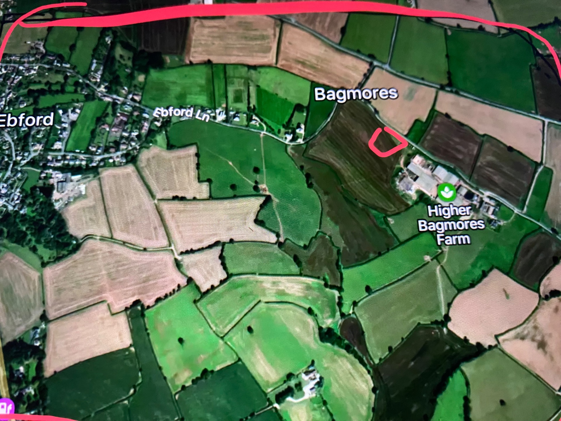 Satellite image of countryside location of propsed site.